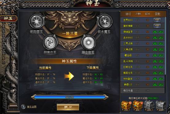 完成日常活动,可获得神玉碎片,同时可提升
