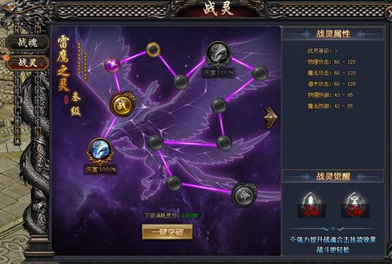 得力助手,好的帮手,助你平步青云。玩家获得战魂之后,点击主界面的“战魂”图标,可以打开战魂系统界面。