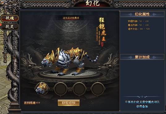 在游戏中,战魂可以幻化获取不同的皮肤等级越高的战神拥有更强的防御能力与更高的攻击属性